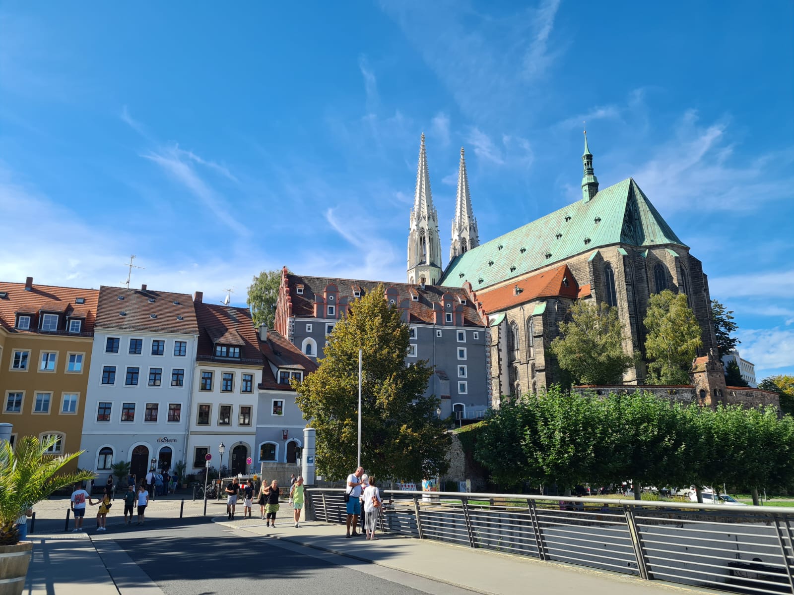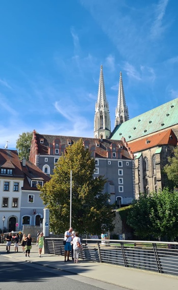 Nach dem gemeinsamen Mittagessen ging es auf Erkundungstour durch die wunderschöne Altstadt. Bei einem Softeis auf der Neißebrücke mit Stippvisite in Zgorzelec (PL), einem gemütlichen Bummel durch die vielen kleinen Geschäfte oder bei einer Besichtigung der Stadtkirche St. Peter und Paul – jeder konnte die Stadt auf ganz unterschiedliche Weise kennen lernen. Auch die Drehorte Görliwoods aus Filmen wie „In 80 Tagen um die Welt“ mit Jacky Chan, „Grand Budapest Hotel“ oder „Der Vorleser“ konnten besucht werden. Dass die Görlitzer Altstadtmillion (insgesamt 11 Millionen Euro 1995-2016) gut angelegt ist, bezeugen viele hervorragend sanierte Gebäude.
