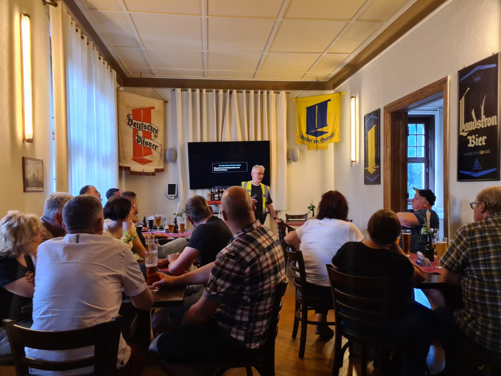 1869 begann ein weiteres Kapitel in der Geschichte der Stadt, als 16 Gründungsmitglieder auf dem Weinberg die Görlitzer Aktien-Brauerei gründeten. Die Geschichte der späteren Landskron-Brauerei und den Herstellungsprozess des Gerstensaftes lernten wir am Nachmittag bei einer Führung in Deutschlands größter Braumanufaktur kennen. Zwei Weltkriege und 40 Jahre DDR überstand die Brauerei, wurde nach der politischen Wende aus dem staatlichen Getränkekombinat herausgelöst und nach einigen Besitzerwechseln wieder privat betrieben. Der Rundgang führte über das Sudhaus, den Gärkeller, verschiedene Lagerkeller schließlich in die historische Direktorenvilla, wo eine kleine Bierverkostung den aufkommenden Durst rasch bekämpfte. Ausgerüstet mit einigen Souvenirs ging es dann im Reisebus zurück nach Niederlauterstein, das wir am Abend mit vielen neuen Eindrücken und Erfahrungen erreichten.