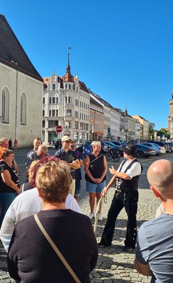 Das wohl letzte Sommerwochenende des Jahres nutzten die Kameraden der FF Niederlauterstein für ihre diesjährige Herbstausfahrt. Am 20.09.2025 ging es in die Europastadt Görlitz, der am östlich gelegensten Stadt Deutschlands. Nach der Ankunft nahm uns Zimmerermeister Zacharias mit auf eine äußerst interessante Stadtführung durch die mittelalterlichen Gassen der Neißestadt, die an der bedeutenden Via Regia lag. Über 4000, teils denkmalgeschützte, Gebäude zeugen von einer reichen Stadtgeschichte. Ob auf dem Untermarkt mit dem Rathausturm, an vielen historischen Bürgerhäusern, deren Fassaden und Erker mit ihren handwerklichen Details ganze Geschichten erzählen können oder in versteckten Innenhöfen und der berüchtigten Verrätergasse zog uns Zacharias hinein in das Görlitz der vergangenen Jahrhunderte.