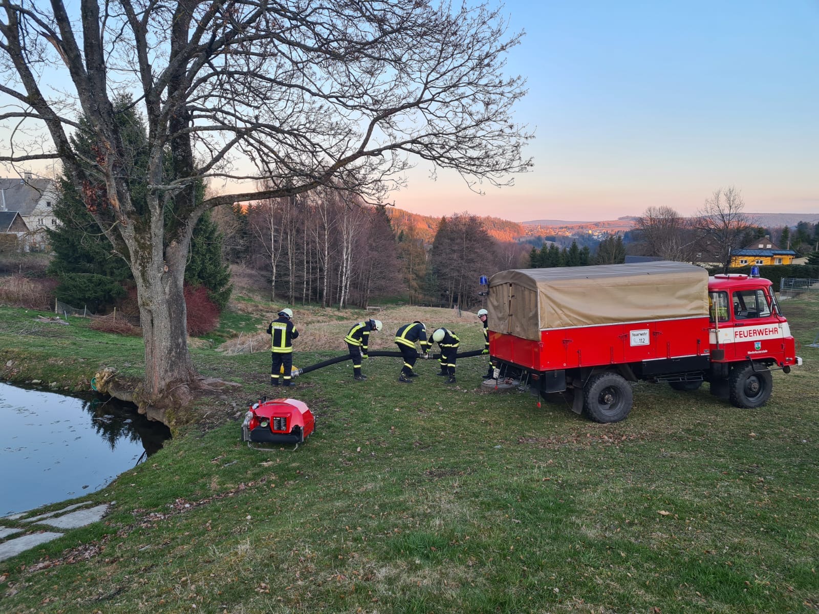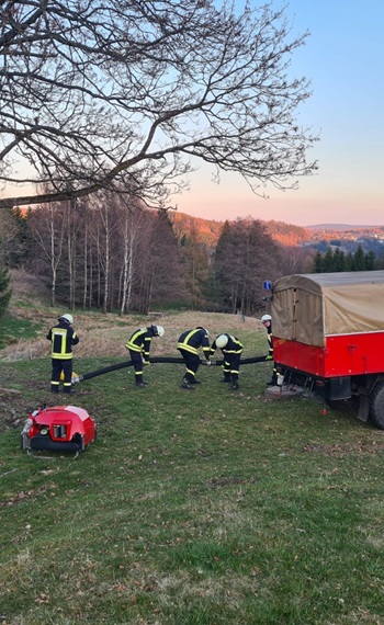 Nach den Entschlammungs- und Hochwasser-Baumaßnahmen im letzten Jahr, die infolge der Starkniederschläge 2021 durchgeführt wurden, konnte erstmalig seit vielen Jahren auch der Leberechtteich wieder für Feuerwehrzwecke genutzt werden.