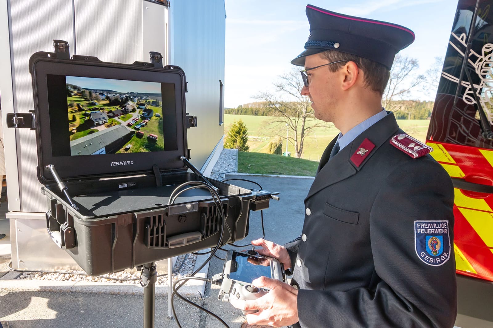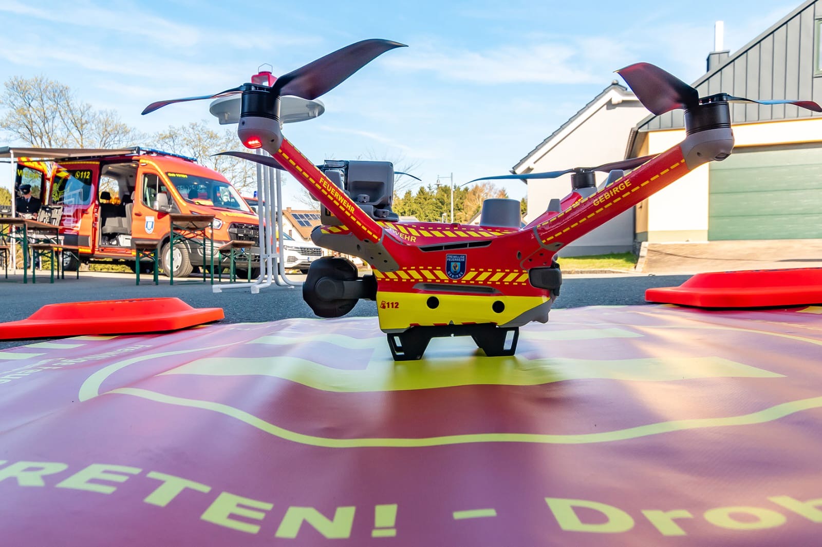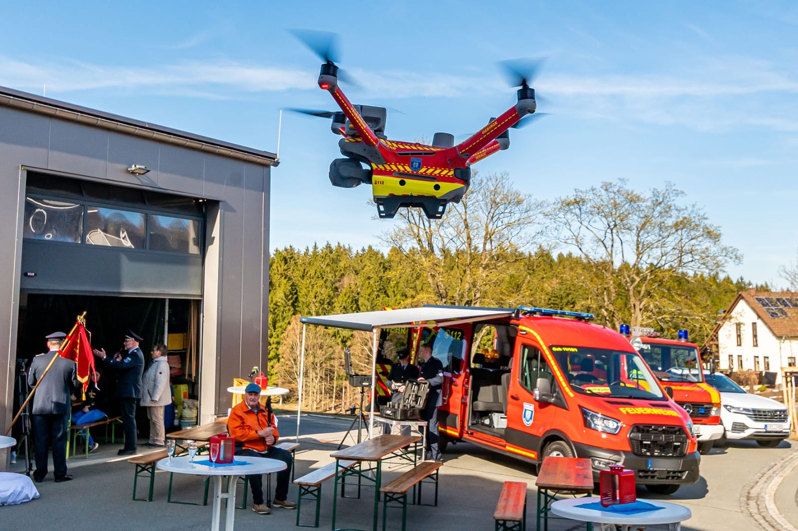 Am Samstag, den 11.04.2026 folgten zwei Kameraden der Einladung der FF Gebirge zur Fahrzeugweihe und offiziellen Indienststellung eines neuen Mannschaftstransportwagens Ford Transit sowie einer Drohne vom Typ DJI Matrice 4TD. Dieses moderne Einsatzmittel ergänzt die bisherige Technik der Stadtfeuerwehr sinnvoll und kann im gesamten Stadtgebiet für verschiedene Einsatzoptionen zum Einsatz kommen. Ob etwa für Erkundungszwecke, bei Vermisstensuchen oder beim Aufspüren von Glutnestern bei Wald- und Vegetationsbränden, mit der verbauten Technik – etwa der Hochleistungskamera mit Wärmebildfunktion, einem Scheinwerfer oder Lautsprecherdurchsage – ist die Drohne hervorragend ausgerüstet. Die Kosten für MTW/Drohne belaufen sich auf 97.000 Euro, wovon 27.000 Euro als Fördermittel vom Freistaat Sachsen flossen.