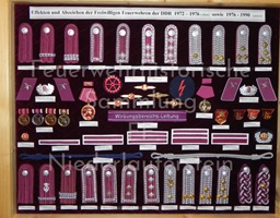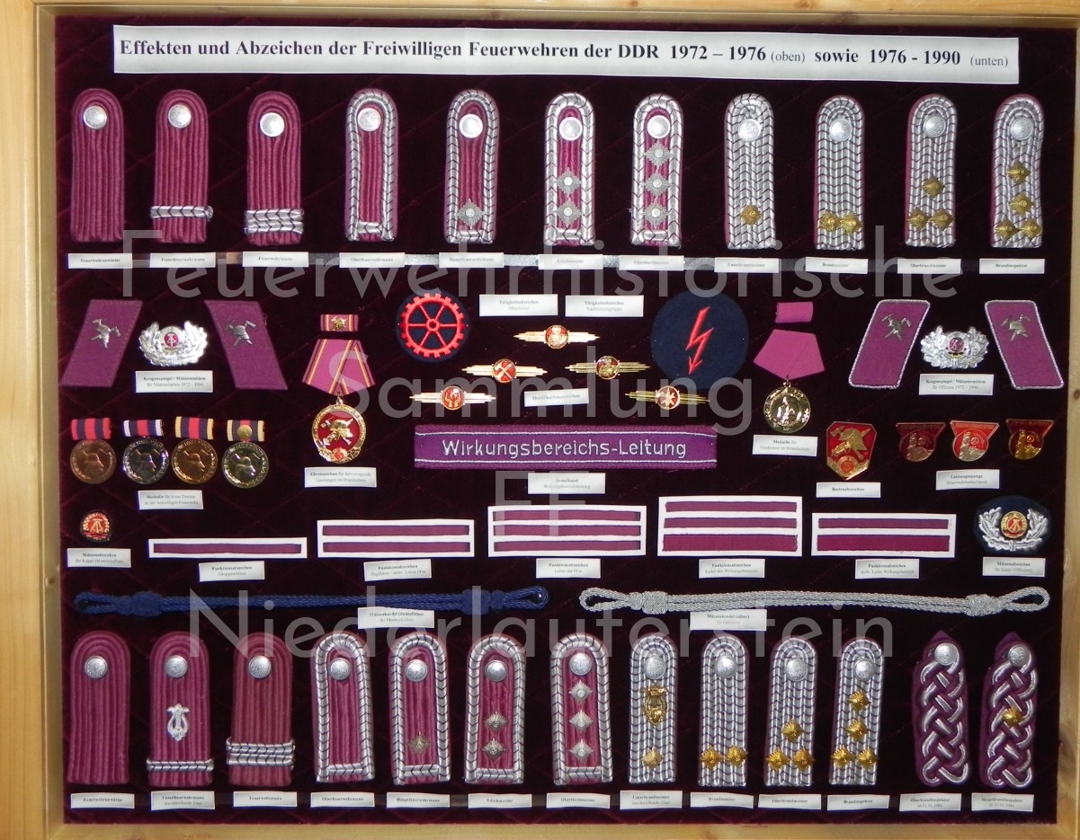 So gehören verschiedene Uniformen, Helme und Ausrüstungsgegenstände genauso zum Inhalt der Sammlung, wie Lektüre und Fachzeitschriften rund um das Thema Feuerwehr. Den Hauptbestandteil bilden aber die Schaukästen mit den Effekten, Abzeichen und Auszeichnungen aus über 100 Jahren sächsischer Feuerwehrgeschichte.