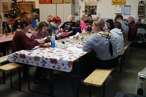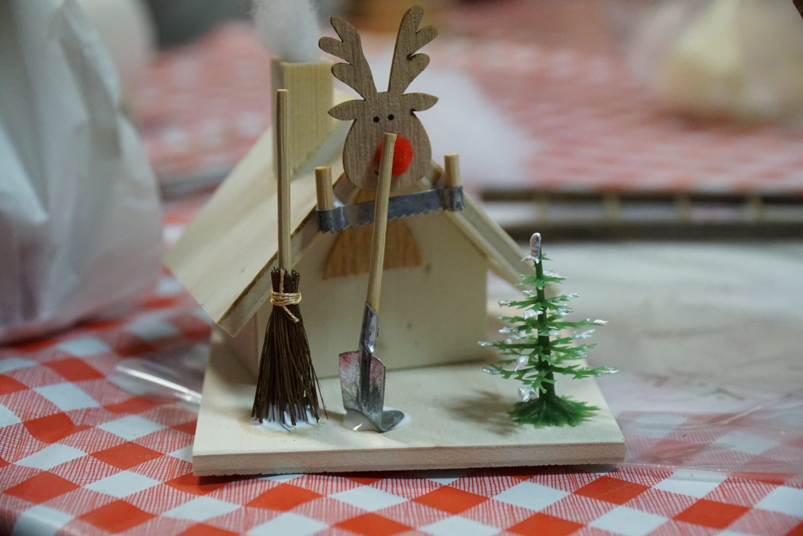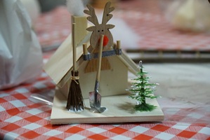 Jetzt konnte wieder gebastelt, geklebt und gehämmert werden. Als Highlight diesen Jahres bot sich ein Räucherhausbausatz zum Selbstbau an. Der Kreativität waren dabei keine Grenzen gesetzt und so entstanden kleine Waldhäuschen, Hexenhäuschen oder viele andere Meisterwerke. Wer die Gemütlichkeit mit Lichtern bevorzugte, konnte auch stimmungsvolle Flaschenbeleuchtungen entstehen lassen. Hier kamen unterschiedliche und hübsche Farbkreationen zum Vorschein. So Einiges lag auf den Tischen bereit, um zusätzlich zum Beispiel Papiersterne zu falten, Gipsfiguren zu bemalen oder mit Naturmaterialien zu experimentieren. Für Jedermann war wieder etwas dabei und es konnten sich kleine als auch große Leute kreativ entfalten.