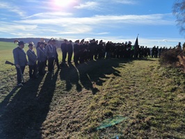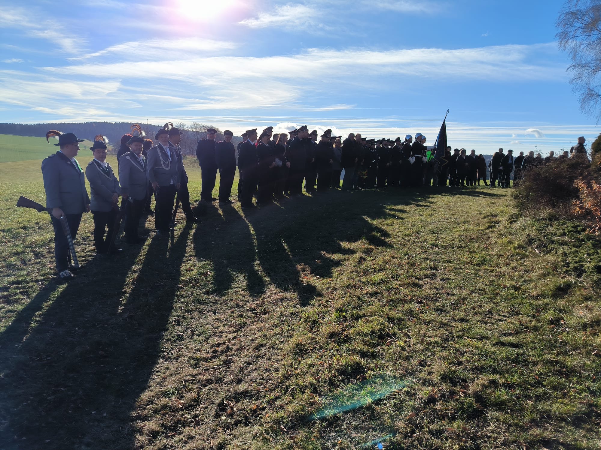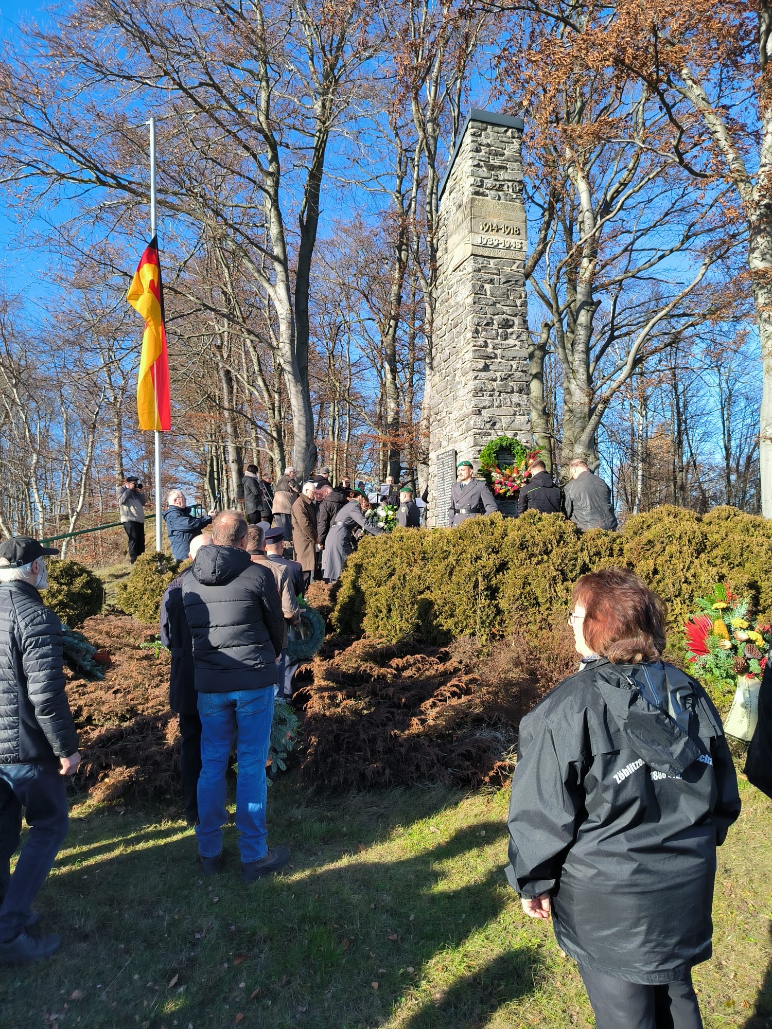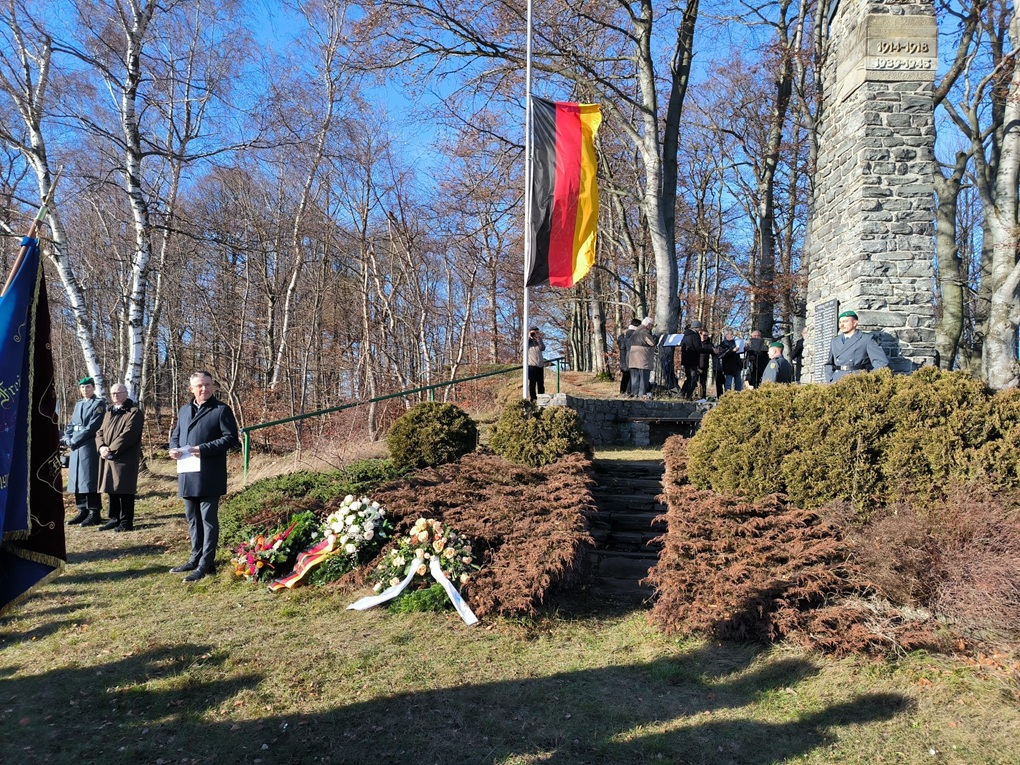 Am Sonntag, den 16.11.2025 folgten zwei Kameraden einer Einladung zur Kranzniederlegung anlässlich des Volkstrauertages zum Denkmal zu Ehren der Gefallenen und Vermissten der Weltkriege auf der Morgensternhöhe in Ansprung. Der Oberbürgermeister der Großen Kreisstadt Marienberg André Heinrich erinnerte in seinen Worten an die Opfer von Gewalt und Krieg, an die Opfer von Terrorismus und politischer Verfolgung und an die Bundeswehrsoldaten, die im Auslandseinsatz ihr Leben verloren. Der Totensonntag steht seit 1952 für ein stilles Gedenken und wird in der Stadt Marienberg jährlich wechselnd an einem der Ehrenmale im Stadtgebiet durchgeführt.