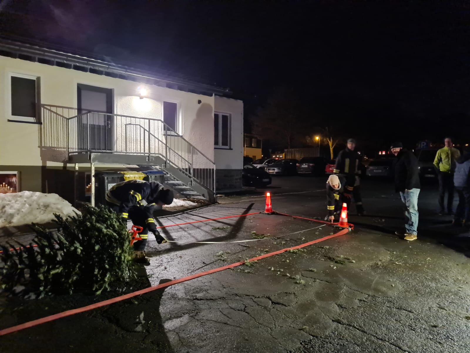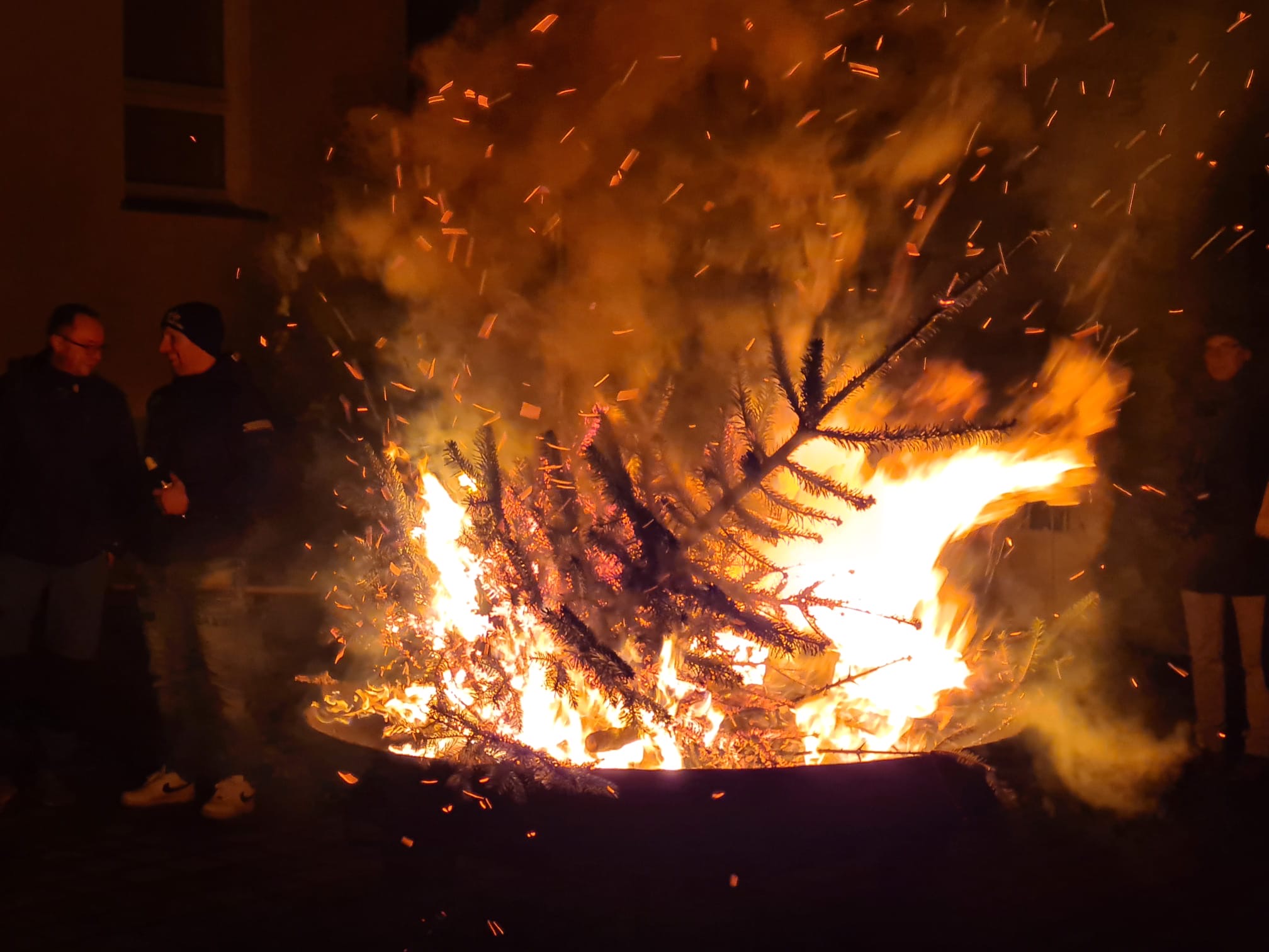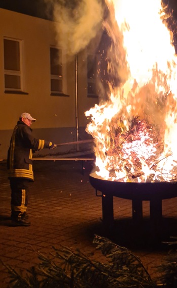 Auch zum diesjährigen Niederlautersteiner Christbaumverbrennen konnten die Kameraden der FF Niederlauterstein wieder viele Gäste vorm Gerätehaus begrüßen. Vom Tauwetter und Regen der letzten Tage war keine Spur mehr, nur der Wind machte das Verbrennen der alten Christbäume zur etwas kniffligen Aufgabe. Dies gelang dennoch gut und so gingen an dem Abend insgesamt 64 ausgediente Christbäume in Flammen auf. Wer einen Baum mitgebracht hatte, bekam natürlich auch einen Glühwein oder Punsch als Tausch.