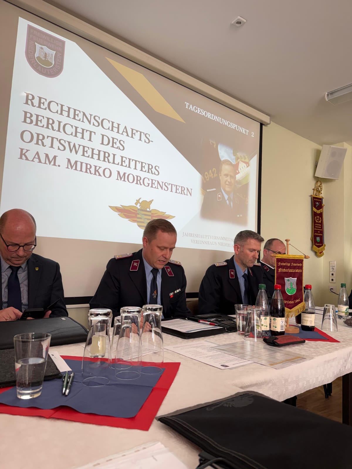 Am Samstag, den 28. Februar 2026, führte die FF Niederlauterstein im örtlichen Vereinshaus ihre diesjährige Jahreshauptversammlung durch. Als Gäste konnten der stellvertretende Oberbürgermeister Roy Müller, der 1. Beigeordnete des Landrats im Erzgebirgskreis Peter Leichsenring sowie der Fachbereichsleiter Einsatz im Kreisfeuerwehrverband Erzgebirge e.V. Kam. Kay Kretzschmar begrüßt werden. In seinem Rechenschaftsbericht zog der Wehrleiter, Kam. Mirko Morgenstern, Bilanz zum vergangenen Jahr 2025. In diesem wurden insgesamt 8 Einsätze abgearbeitet. Neben dem Einsatzdienst engagiert sich die Wehr auch bei der Ausgestaltung des kulturellen Lebens im Ort. So wurden z.B. das Christbaumverbrennen, das Maibaumsetzen & Hexenfeuer, das 66. Vogelschießen, das Weihnachtsbasteln und der Marienberger Advent in den Höfen aus- oder mitgestaltet.