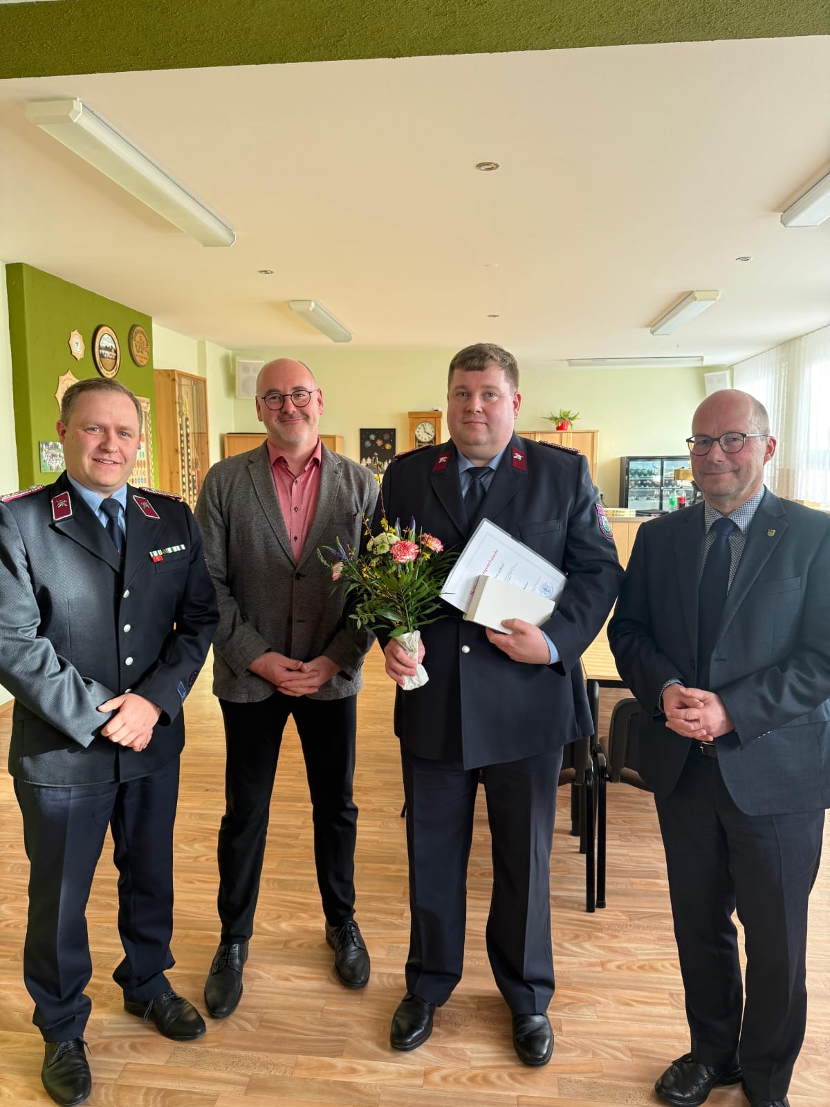 Im Anschluss konnten Tilda Göthel in die Jugendfeuerwehr und die Kam. Sunny Michel Ullmann und Phillip Ehrig in die Aktive Abteilung aufgenommen werden. Kam. Robert Gabriel wurde nach entsprechender Dienstzeit und den notwendigen Qualifikationen zum Hauptfeuerwehrmann befördert.
