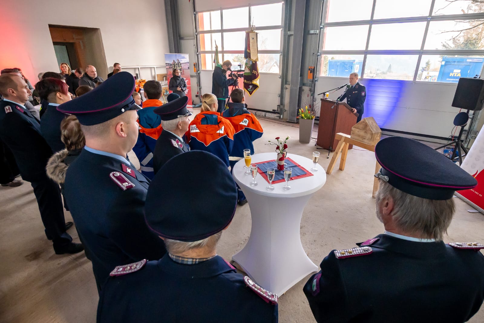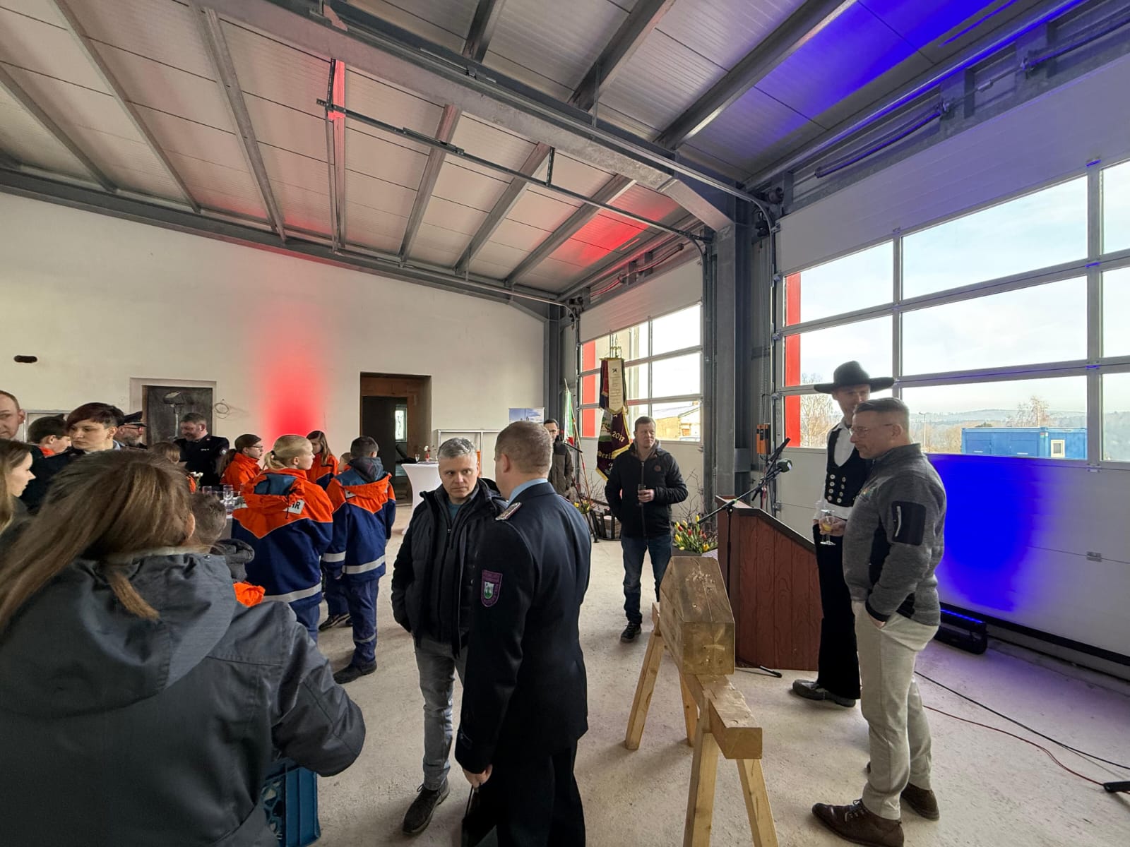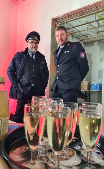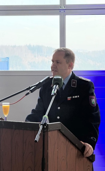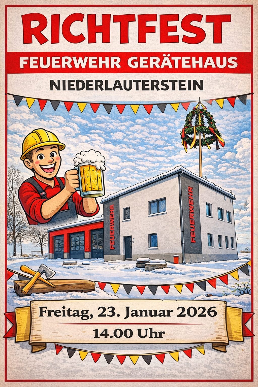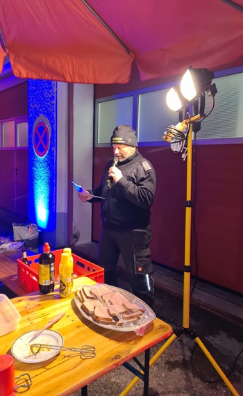 Großer Andrang am 23.01.2026 auf der Baustelle des Gerätehaus-Neubaus. Unser Oberbürgermeister André Heinrich hatte zum Richtfest geladen! Der Bau ist zwar schon ein ganzes Stück weiter vorangeschritten, dennoch sollte dieses traditionelle Ereignis nicht fehlen. Und so fanden sich am frühen Nachmittag Vertreter der Stadtverwaltung, des Stadtrates, der beteiligten Planungsbüros und Handwerksfirmen, Nachbarn, Freunde und die Kameraden der Aktiven und Ehrenabteilung sowie der Jugendfeuerwehr zusammen. Der Wehrleiter Mirko Morgenstern eröffnete das Richtfest mit ein paar kurzen Anekdoten aus den letzten Monaten. Herr Heinrich dankte den Stadträten für deren Unterstützung des Projekts, allen Beteiligten für die fachgerechte und vor allem zügige Bauausführung und speziell dem verantwortlichen Bauleiter Jörg Uhlig für dessen umsichtige und gewissenhafte Leitung der Bauarbeiten.